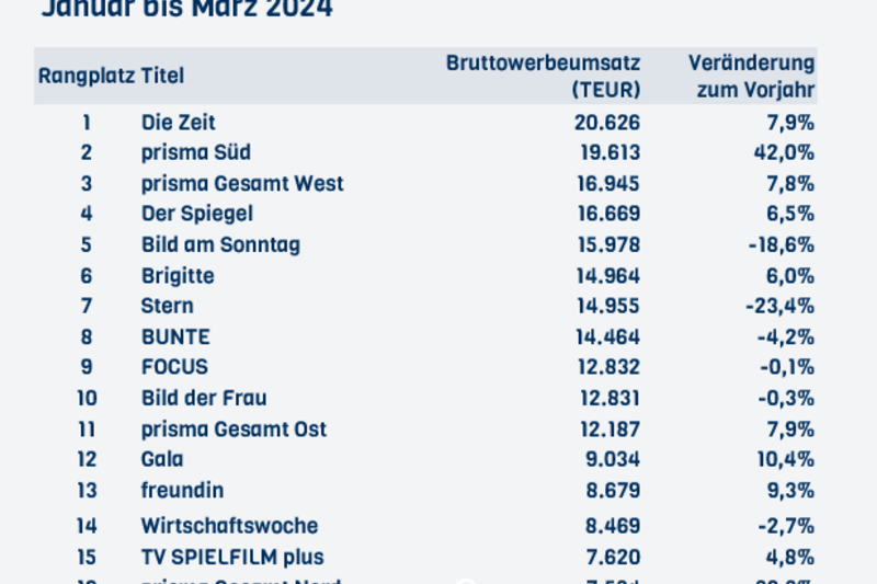Mit einem Bruttowerbeumsatz von 92,7 Millionen Euro profiliert sich Die Zeit 2024 zum zweiten Mal in Folge als führender Titel unter den frei…