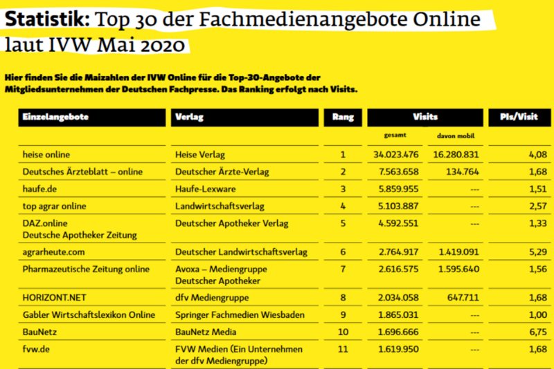 Deutsche Fachpresse, IVW, Visits, Fachmedien