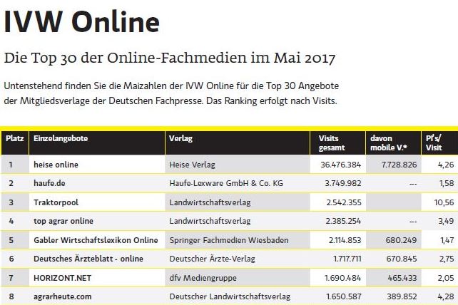 Viele Top-30-Onlineangebote aus den deutschen Fachmedienhäusern haben im Wonnemonate Mai einen Zuwachs an Visits zu verzeichnen. Neben haufe.de…