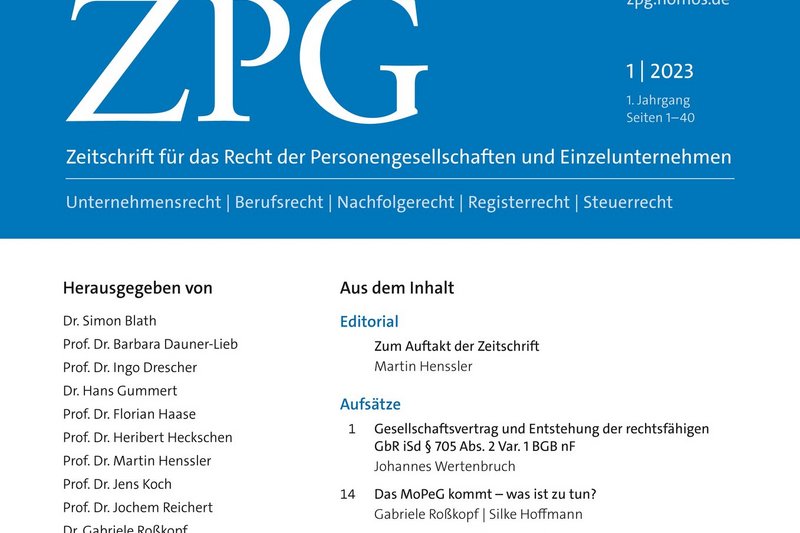 Die neue "ZPG – Zeitschrift für das Recht der Personengesellschaften und Einzelunternehmen" ist nach Verlagsangaben die erste Zeitschrift, die sich…