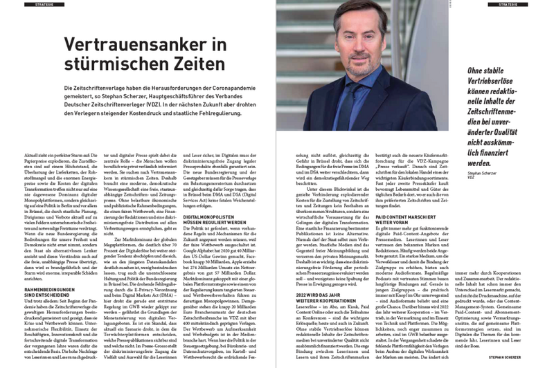 Im Herzen der Hauptstadt, direkt am Brandenburger Tor, bietet das MVFPMedienforum der freien Presse im Allianz Forum eine Plattform für vielseitige Perspektiven: inspirierende Keynotes, kontroverse Diskussionen und den direkten Austausch über die Zukunft unserer Branche.