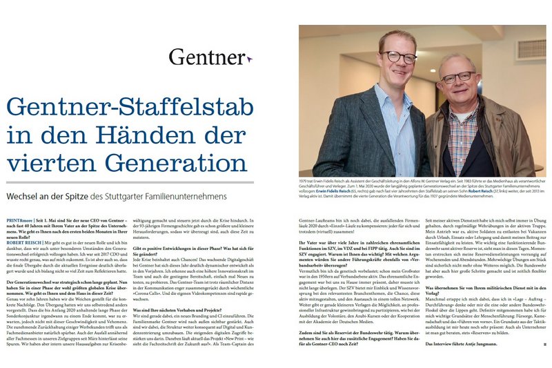 Im PRINT&more-Interview spricht Gentner-CEO Robert Reisch über den Wechsel an der Spitze des Stuttgarter Familienunternehmens, die Corona-Krise, sein…