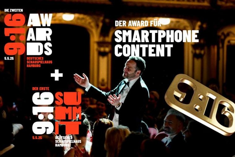 Nach der gelungenen Premiere aus dem Vorjahr mit über 1.000 VertreterInnen von Brands und Presse vor Ort, mehr als 35.000 ZuschauerInnen via Livestream und 785.000 Stimmabgaben via YouTube folgt nun der zweite Akt: Am 5. Mai werden im Deutschen SchauSpielHaus zum zweiten Mal die 9:16 AWARDS verliehen, um die besten Performances im Vertical Video-Format zu küren.