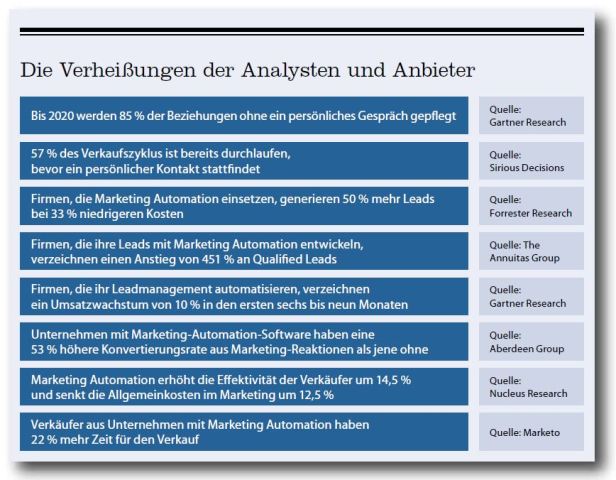 Auf der anderen Seite der Medaille: Technologie. Technologie-basierte Verheißungen wie bessere Messbarkeit und größere Zielgenauigkeit durch zum Beispiel Predictive Analytics oder Programmatic Buying. Gekoppelt mit dem Versprechen, Prozesse zu automatisieren und so die Marketiers zu entlasten. Zum Beispiel durch Trigger- und Algorithmen-basierte Kampagnen, die ohne weiteres Zutun eines Menschen Werbemittel an Interessenten ausspielen. Marketiers greifen also vermehrt auf Marketing-Automation-Lösungen zurück, um die gestiegene Komplexität zu bewältigen und Chancen bestmöglich zu nutzen. Vor diesem Hintergrund verwundert die Prognose von Gartner nicht mehr ganz so sehr, dass in 2017 Marketingverantwortliche mehr in Systeme und Technologie investieren werden als die IT-Verantwortlichen.