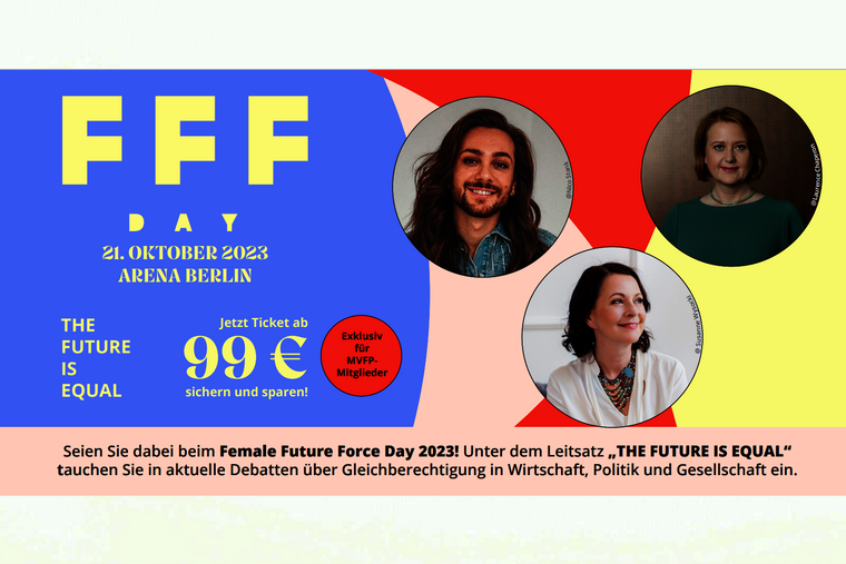 Diesen Fragen widmet sich der FEMALE FUTURE FORCE DAY 2023 von Edition F, der am 21. Oktober in der Arena in Berlin stattfindet. Unter dem Leitsatz „The Future Is Equal“ sprechen wir gemeinsam dazu, wie wir in Zukunft leben möchten – in Wirtschaft, Gesellschaft und Politik. Vorträge, Panel-Talks, Impulse und Masterclasses regen zum Nachdenken an und machen bewusst, dass jede und jeder Einzelne etwas bewirken und selbstwirksam sein kann. Der FFF DAY eröffnet neue Horizonte und erweitert das Netzwerk.