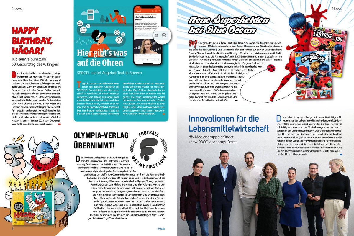Über Neuigkeiten aus dem MVFP-Netzwerk, den Landesvertretungen und den Mitgliedsverlagen – mit Innovationen, Jubiläen und Auszeichnungen – sowie über aktuelle Themen zur Pressefreiheit und Meinungsvielfalt wird auf insgesamt 26 Seiten in der neuen Ausgabe berichtet. Einen besonderen „Eyecatcher“ liefert das druckveredelte Titelbild, das die aktuelle digitale Dynamik funkelnd und mechanisch versinnbildlicht – eine glanzvoll geprägte Haptik, die nur Print kann.