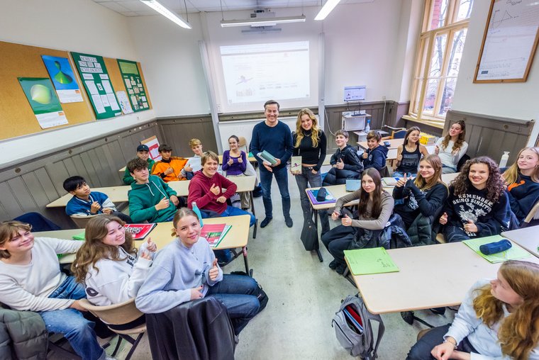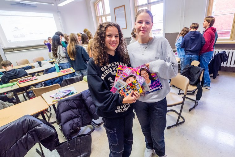 Anschließend diskutierten beide mit den Schulklassen über deren Medien- und Lesegewohnheiten sowie über ihre Erfahrungen als Jugendliche im Zeitalter der Digitalisierung. Dabei wurde deutlich, wie stark Social-Media-Kanäle und -Plattformen den Medienkonsum der Jugendlichen prägen: Die meisten Schülerinnen und Schüler nutzen regelmäßig TikTok oder Instagram – auch um sich über das Weltgeschehen zu informieren. Dabei ist der Faktencheck durch Recherche im Internet aus Sicht der Schülerinnen und Schüler unverzichtbar. Auch Zeitschriften und Bücher spielen im Alltag der Jugendlichen eine Rolle.