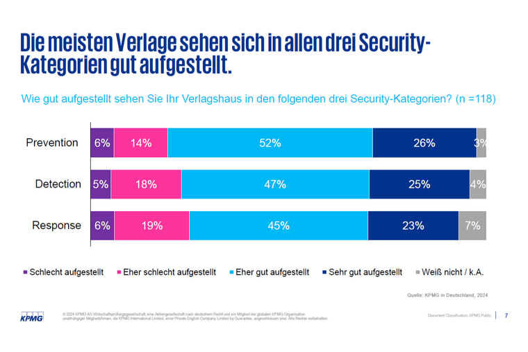 „Um all diese Herausforderungen zu bewältigen, ist es entscheidend, proaktive Maßnahmen zu ergreifen, wie zum Beispiel regelmäßige Sicherheitsaudits, Penetrationstests, Schulungen für Mitarbeitende, Implementierung von fortschrittlichen und zugleich aktuellen Sicherheitslösungen und eine transparente Kommunikation innerhalb des Verlags sowie mit externen Stakeholdern im Falle eines Cyberangriffs“, hebt Dr. Michael Falk, Partner, Consulting, Cybersecurity bei KPMG, hervor.