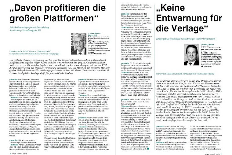 Herr Thiemann, Sie warnen, dass die E-Privacy-Verordnung der EU für die journalistischen Medien in Deutschland ausgesprochen negative Folgen haben und den Wettbewerb mit den großen Plattformbetreibern weiter verzerren werde. Warum? Die Plattformbetreiber sind doch davon auch betroffen?