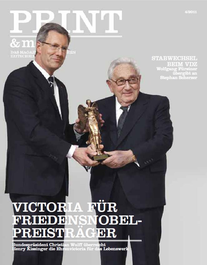 Heute ist die neue, vierte Ausgabe der PRINT & more 2011 erschienen. Die vierteljährliche Publikation des Verbands Deutscher Zeitschriftenverleger VDZ steht diesmal im Zeichen der Spitzenveranstaltungen: Zeitschriftentage, Publishers‘ Night und Führungswechsel im VDZ.