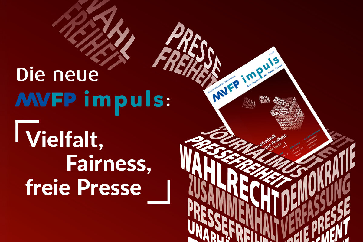 Die neue Ausgabe von MVFP impuls setzt vor der Bundestagswahl unter dem Titel der diesjährigen Pressefreiheitskampagne „Pressefreiheit ist deine Freiheit. Du hast die Wahl.“ ein Zeichen für faire Rahmenbedingungen, einen freien Markt und Pressevielfalt.