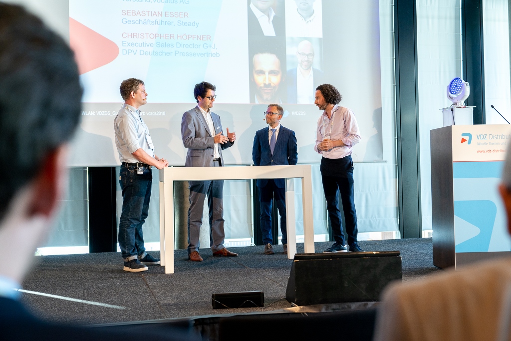 Den Einstieg in die Podiumsdiskussion zur Preisgestaltung machte Prof. Dr. Florian Bauer (Vocatus AG) mit seiner Einschätzung zur Preisstrategie der Verlage. Die Preissetzung im Abo-Vertrieb sei in Teilen auf fehlendes Kundenwissen zurückzuführen – Preisakzeptanz bei Lesern sei trainierbar, denn „von Marktanteilen an sich bezahle man keine Gehälter“. Sebastian Esser (Steady) und Christopher Höpfner (DPV Deutscher Presse Vertrieb) diskutierten im Anschluss die maximal mögliche Höhe individueller Copypreise. Hier stellte sich die empirische Frage, wie stark die Preisakzeptanz der Leser tatsächlich sei. Man war sich einig, dass man das Preislimit noch nicht erreicht habe. Den Abschluss dieses Themenblocks bildete Jens Gützkow (PressMatrix) mit einem Vortrag über notwendigen Mut für Experimente bei digitalen Abos. Digitale Nutzer haben hunderttausende Optionen online, Unternehmen wie Verlage müssen sich an die zunehmend situative Nutzung anpassen.