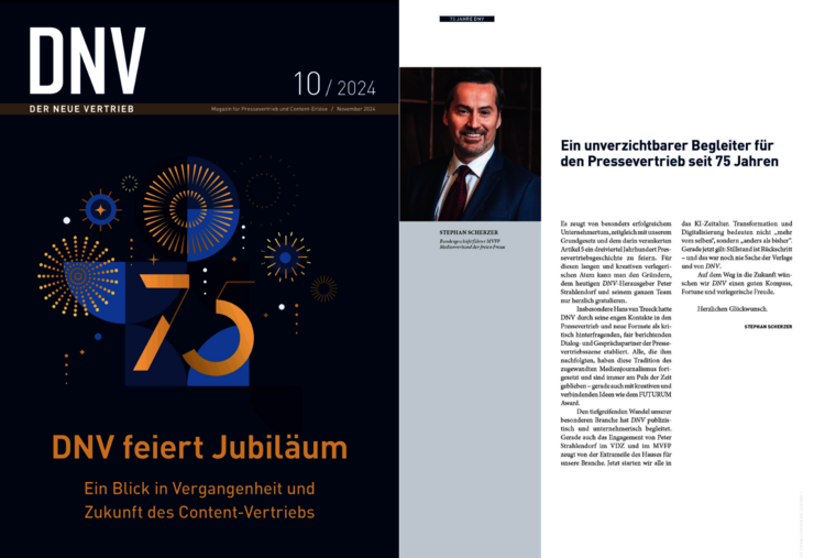 Insbesondere Hans van Treeck hatte DNV durch seine engen Kontakte in den Pressevertrieb und neue Formate als kritisch hinterfragenden, fair berichtenden Dialog- und Gesprächspartner der Pressevertriebsszene etabliert. Alle, die ihm nachfolgten, haben diese Tradition des zugewandten Medienjournalismus fortgesetzt und sind immer am Puls der Zeit geblieben – gerade auch mit kreativen und verbindenden Ideen wie dem FUTURUM Award.