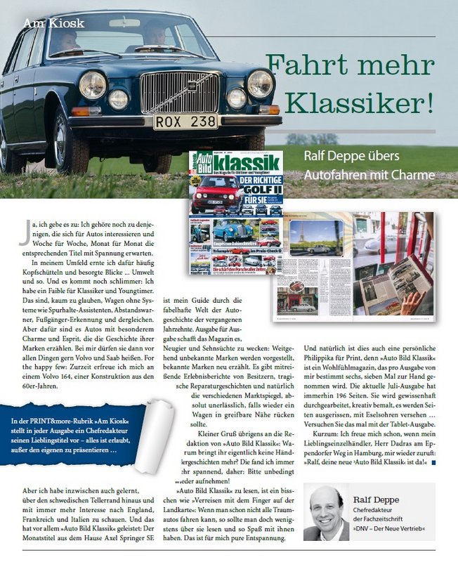 Kurzum: ich freue mich schon, wenn mein Lieblingseinzelhändler, Herr Dadras am Eppendorfer Weg in Hamburg, mir wieder zuruft: Ralf, Deine neue Auto Bild Klassik ist da!