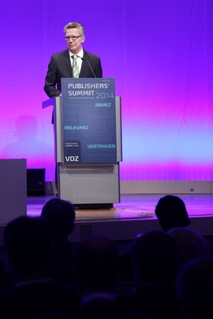 Zudem müssten sich Verlage anständig refinanzieren können und dazu zähle beispielsweise auch, dass deren Direktmarketingaktivitäten wie beim Fachpressevertrieb weiterhin möglich sein müssten. Außerdem sollten Schlupflöcher verhindert werden, die außereuropäischen Unternehmen, die ihren Sitz in Irland nehmen, Vorteile verschafften. Ein Level-Playing-Field im Datenschutzrecht sei in diesem Sinne erforderlich, so dass sich jeder Anbieter gleichen Regeln unterwerfen müsse. Abschließend betonte der Bundesinnenminister, dass man auf die deutsche Zeitschriftenlandschaft stolz sein könne: "Um die Vielfalt, Breite, Tiefe und Qualität, analog und online, beneiden uns viele in der Welt". Dabei solle es bleiben.