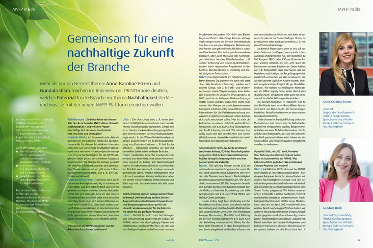 PRINT&more | Sie beide leiten seit diesem Jahr den Ausschuss des MVFP „Klima, Umwelt, Nachhaltigkeit“. Mit welchen Fragen beschäftigt sich der Ausschuss konkret, was sind Ziele und Strategien?