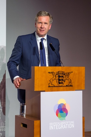 Nach den Grußworten von Bilkay Öney, Ministerin für Integration in Baden – Württemberg, dem Vorstandsvorsitzenden der Deutschlandstiftung Wolfgang Fürstner und dem Staatssekretär des Bundesfamilienministerium Dr. Ralf Kleindiek war die Festrede von Altpräsident Christian Wulff der Höhepunkt.
