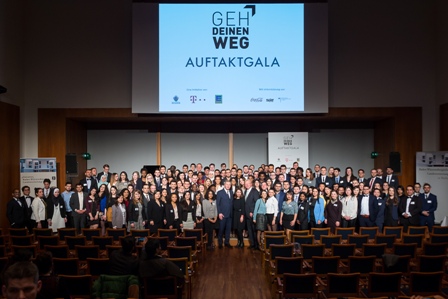 Gemeinsam mit Gästen aus Politik, Wirtschaft und Diplomatie startete der 4. Jahrgang des GEH DEINEN WEG Stipendien- und Mentorenprogramms mit einer festlichen Auftaktgala und vollem Haus in das Programm. Neu unter ihnen 12 Flüchtlingsstipendiaten, die erst kurze Zeit in Deutschland sind und jetzt schon Vorbilder für Spracherwerb und Engagement sind.