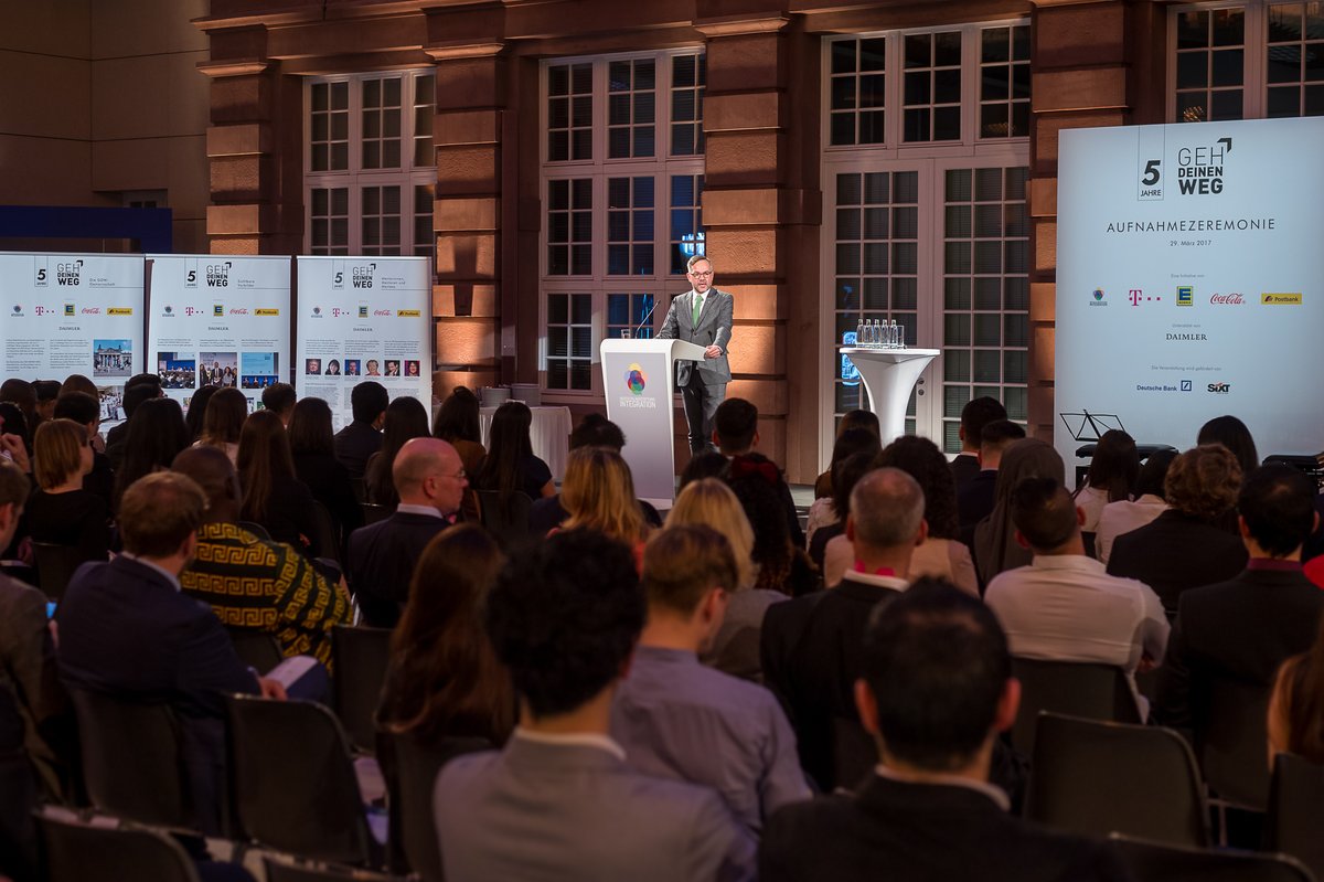 Anlässlich des fünfjährigen Jubiläums verwies Thomas Gauly, Vorstandsvorsitzender der Stiftung, auf die gesellschaftspolitische Bedeutung des Programms GEH DEINEN WEG und dankte allen Unterstützern: "Der Erfolg von GEH DEINEN WEG wäre ohne das große Engagement der vielen Mentoren aus Politik, Wirtschaft, Wissenschaft, Kultur und Medien nicht möglich. Ihnen sowie allen Partnern, Unterstützern und Förderern gilt mein herzlicher und aufrichtiger Dank. Ihr Einsatz und Engagement ist nicht selbstverständlich und doch unerlässlich, wenn unsere Gesellschaft die Herausforderung der Integration zum Erfolg führen will."