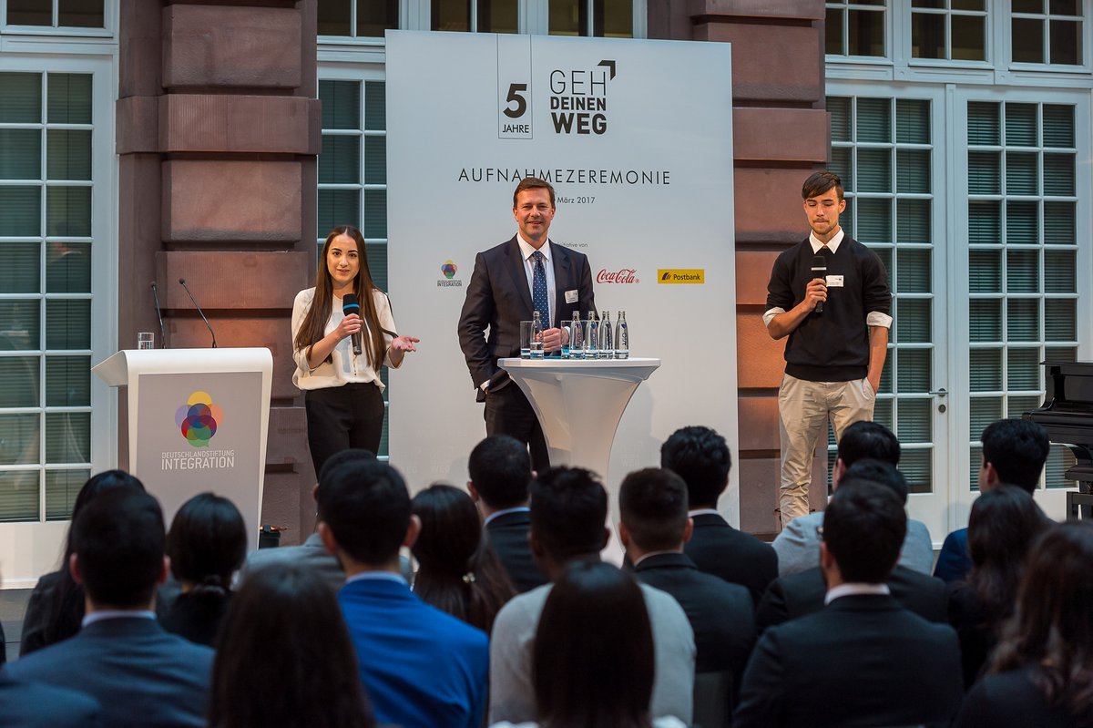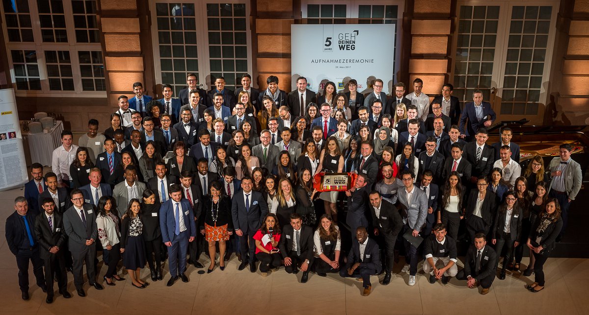 Bei der Aufnahmezeremonie am 29.03.2017 begrüßten die Deutschlandstiftung Integration und ihre Partner die 700. Stipendiatin des GEH DEINEN WEG Stipendienprogramms, das seit 2012 besteht. Der Jahrgang 2017 umfasst 104 neue Stipendiatinnen und Stipendiaten, deren Familien Wurzeln in über 30 Nationen haben. Sie haben sich im vergangenen Jahr in einem anspruchsvollen Auswahlprozess durchgesetzt.