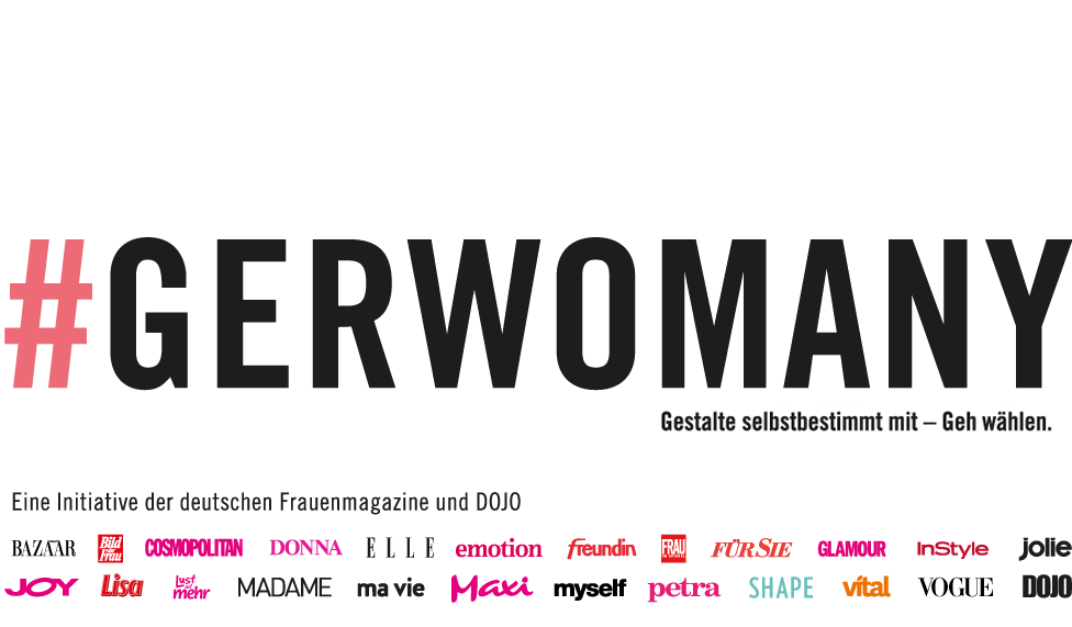 23 Redaktionen aus fast allen großen deutschen Magazinverlagen (Bauer Media Group, Hubert Burda Media, Condé Nast, Emotion Verlag, Funke Mediengruppe, Jahreszeiten Verlag und Vision Media) stehen hinter #GERWOMANY. Die außergewöhnliche Aktion soll Frauen in Zeiten des aufkeimenden Populismus ihre politische Gestaltungsmacht bewusst machen und sie animieren, sich durch aktive Wahlbeteiligung für ihre Rechte einzusetzen.