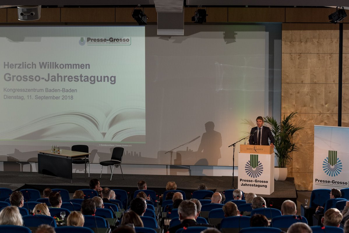 Philipp Welte, VDZ-Vizepräsident und -Vorstand Die Publikumszeitschriften lobte den Ver-änderungsprozess des Presse-Grosso. Dass dieser seine Kräfte bündele, um Investitionen in Technologie und Innovationen zu ermöglichen und schlagkräftige Einheiten zu bilden, sei wichtig. „Hut ab vor dem Mut der Grossisten!“, rief Welte aus. „Sie sind auf dem Weg in die Zukunft.“ Um das Pressevertriebssystem in eine erfolgreiche und stabile Zukunft zu führen, müssten die Verlage den Weg genauso gehen wie die Grossisten.“ Welte beschwor die Partnerschaft mit dem Grosso, um das Fundament des gesellschaftlichen Pluralismus zu erhalten. Eben dieses sei bedroht, weil die tradierte Werteordnung des Westens zerfalle und die Pressefreiheit durch Demokratiegegner unter Druck gerate.