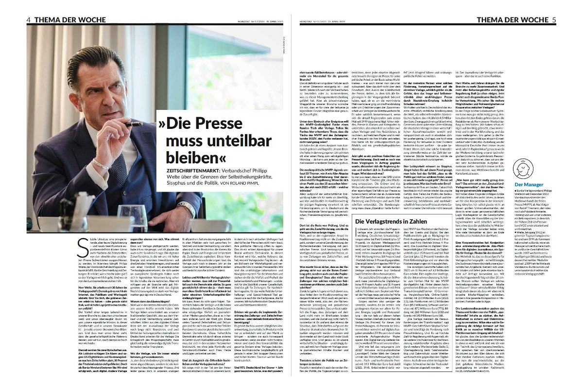 Ja, aber diese Veränderung ist nicht irgendwann abgeschlossen, sondern ist ein kontinuierlich beschleunigender Prozess. Und leider genau dort, in unserem analogen Kraftzentrum, hat uns das vergangene Jahr in allen Märkten sehr hart getroffen: Im Vertrieb und in der Vermarktung, vor allem aber sind in der Produktion die Kosten für Papier, Druck und Energie und im Vertrieb die Zustellkosten explodiert. Diese Komplexität der Herausforderungen lässt die Verlage auch noch in diesem Jahr an die Grenzen ihrer Selbstheilungskräfte stoßen und bedroht manche in ihrer Existenz.