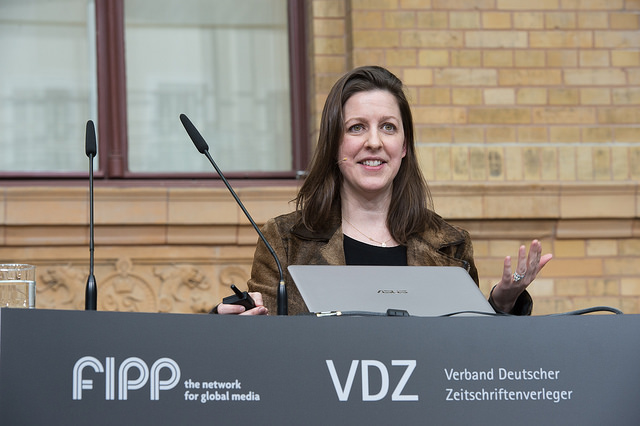 "We want people to come in to the Times and find out who we are and what we're doing," she said, at a presentation at the Digital Innovators' Summit today in Berlin. Attracting new and retaining subscribers is a strategic problem, but The Times solved the issue with an editorial focus.