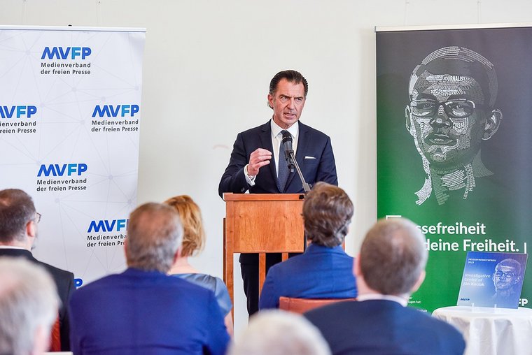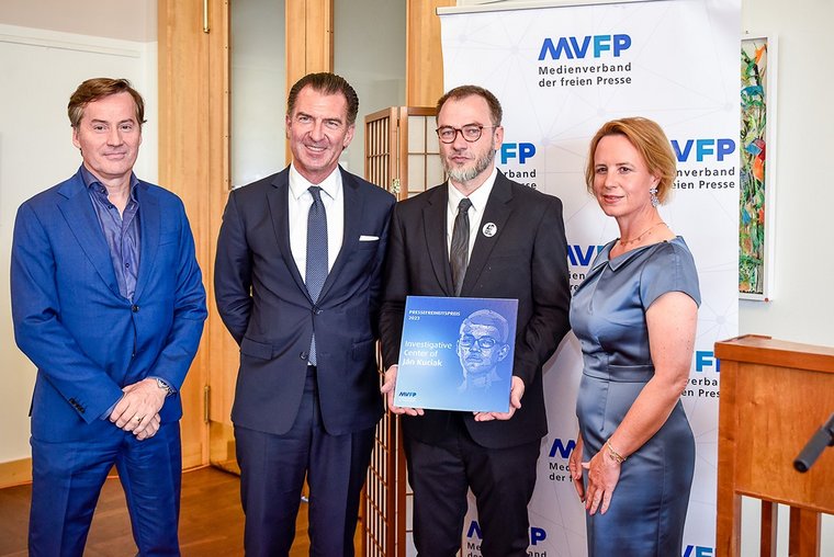 Im Rahmen der Delegiertenversammlung des Medienverbands der freien Presse (MVFP) ist heute im Internationalen Club des Auswärtigen Amtes erstmals vor rund 50 Vertreterinnen und Vertretern der 350 Mitgliedsverlage der ‚Pressefreiheitspreis‘ des Medienverbands der freien Presse vergeben worden. Ausgezeichnet wurde das ‚Investigative Center of Ján Kuciak‘ (ICJK), dessen Chefredakteur und Chairman Lukáš Diko den Preis entgegennahm und die Gelegenheit nutzte, auf die außerordentlich schwierige Arbeitssituation für Journalistinnen und Journalisten in der Slowakei – mitten in Europa – hinzuweisen: „Wir wissen diesen Preis in aller Bescheidenheit sehr zu schätzen. Immer wieder müssen wir daran erinnern, dass die Mörder von Ján Kuciak ihm aufgrund seiner Ermittlungen sinnlos das Leben nahmen. Er war es, der gemeinsam mit anderen investigativen Journalisten – zu einer Zeit, als die Strafverfolgungsbehörden versagten – Korruption und unrechtmäßige Handlungen aufdeckten. Freie Medien und investigative Journalisten waren somit die letzte Verteidigungslinie der Gesellschaft. Auch heute sind die freien Medien einem beispiellosen Angriff ausgesetzt. Wenn wir die Freiheit der Medien nicht schützen, werden wir auch die Demokratie und ihre Werte nicht schützen.“*