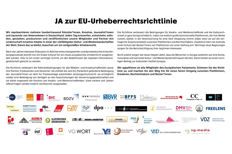 JA zur EU-Urheberrechtsrichtlinie | YES to the EU Copyright Directive