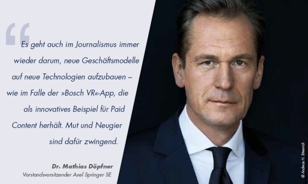 Das Beispiel VR zeigt: Es geht auch im Journalismus immer wieder darum, neue Geschäftsmodelle auf neuen Technologien aufzubauen – wie im Falle der »Bosch VR«-App, die als innovatives Beispiel für Paid Content herhält. Mut und Neugier sind dafür zwingend. Darin können wir uns vielleicht bei Jheronimus Bosch eine Scheibe abschneiden. //
