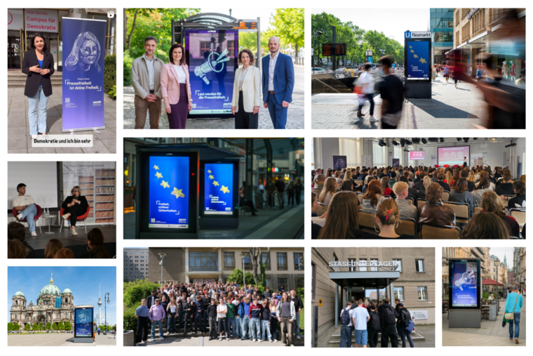 Bereits am 29. April fand im Rahmen der Kampagne ein interaktiver Aktionstag für Jugendliche in der ehemaligen „Stasi-Zentrale. Campus für Demokratie“ in Berlin statt. Rund 180 Schülerinnen und Schüler tauchten in sechs Workshops und einer prominent besetzten Podiumsdiskussion tief in die Themen Pressefreiheit, Desinformation und Medienkompetenz ein.