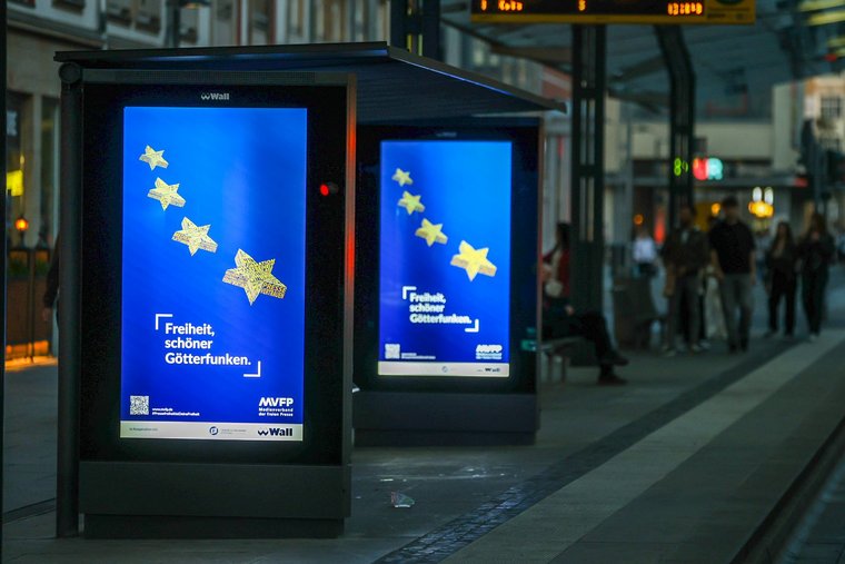 Dank der Kooperation mit der Wall GmbH sind die Motive seit dem 28. April auf über 1.100 digitalen Werbeflächen in 13 deutschen Städten sichtbar – darunter Berlin, Hamburg, Köln, Stuttgart und Dresden. Damit erreicht die Kampagne erneut ein Millionenpublikum und sorgt bundesweit für Sichtbarkeit und Aufmerksamkeit. „Eine freie und unabhängige Presse ist unverzichtbar für eine funktionierende Demokratie. Wir freuen uns, auch in diesem Jahr die Kampagne des MVFP zu unterstützen und die Botschaften auf unseren digitalen Stadtmedien für Millionen Menschen in ganz Deutschland sichtbar zu machen“, betont Patrick Möller, Geschäftsführer, Städtemarketing & Service bei der Wall GmbH.