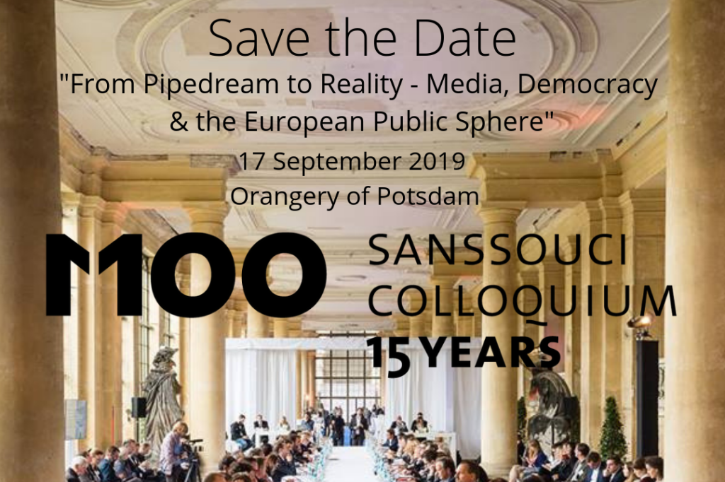 Am 17. September diskutieren über 60 Chefredakteure, Politiker und Wissenschaftler beim M100 Sanssouci Colloquium in der Orangerie in Potsdam über die Zukunft der europäischen Öffentlichkeit. Seit 15 Jahren bietet M100 tonangebenden Journalistinnen und Journalisten sowie Schlüsselfiguren aus Wissenschaft und Politik die Gelegenheit, über aktuelle Entwicklungen in Europa und ihre Auswirkungen auf Demokratie, Presse- und Meinungsfreiheit zu diskutieren und mediale Strategien für die Stärkung europäischer Kernwerte zu erörtern.