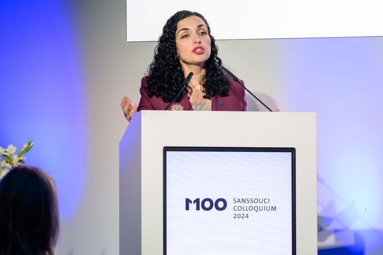 Dr. Vjosa Osmani-Sadriu nutzte ihre Dankesrede, um den inzwischen über 50.000 deutschen Soldaten zu danken, die im Kosovo seit nunmehr 25 Jahren Dienst getan haben, darunter, wie sie betonte, auch Mike Schubert, inzwischen Oberbürgermeister Potsdams. „Die Bundeswehr hat im Kosovo dafür gesorgt, dass mein Land eine Chance auf Frieden bekam, vom Apartheidsregime Slobodan Miloševićs befreit wurde, der einen genozidalen Krieg gegen den Kosovo führte, und dass der Kosovo sich frei und demokratisch entwickeln kann.“ Weiter sagte sie: „Unsere Ambition ist es, in die EU und die Nato einzutreten. Die Integration in starke Bündnisse würde uns und dem Land sehr helfen, aber wir können auch viel zurückgeben.“