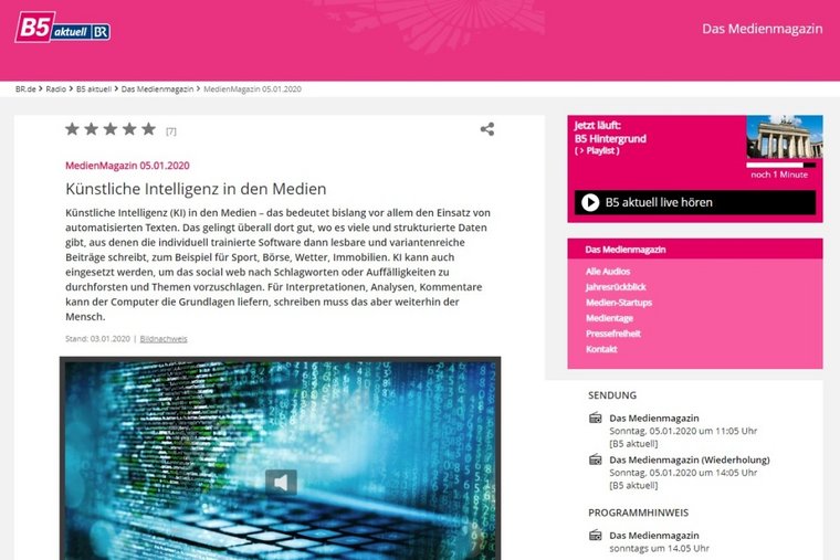 B5 MedienMagazin: Künstliche Intelligenz in den Medien