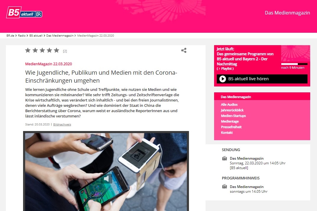 B5 Medienmagazin, Zeitschriften, Coronavirus, COVID19