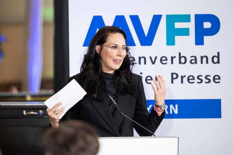 Anina Veigel, Geschäftsführerin MVFP Bayern, fasste den Expertenaustausch zusammen: „Künstliche Intelligenz bringt gewaltige Chancen und Herausforderungen für unsere Branche, für die Gesellschaft und für die Meinungsbildung in unserer Demokratie mit sich.“ Veigel versicherte: „Wir vom MVFP setzen uns für die Belange der Branche ein: vor Ort in Bayern, in Berlin und in Brüssel.“