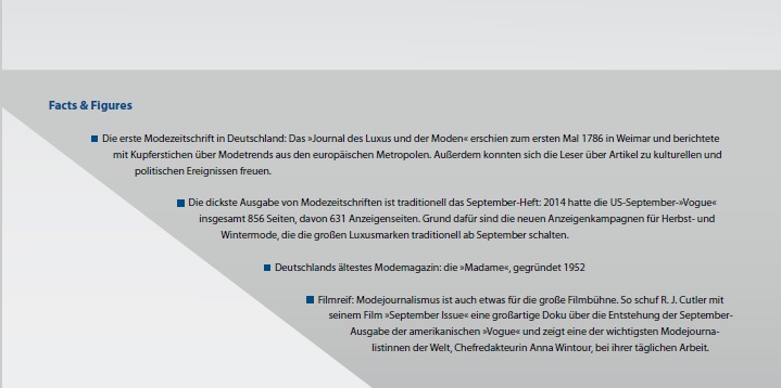 "Der Mode entkommt man nicht, denn auch wenn Mode aus der Mode kommt, ist das schon wieder Mode." Kaiser Karl, wie man den deutschen Tausendsassa und Modedesigner Karl Lagerfeld in Modekreisen gerne nennt, muss es wissen, schließlich ist der seit mehr als sechs Jahrzehnten in Paris lebende Kreativdirektor des Modehauses Chanel im Fashion Business tätig. Doch nicht nur er, der tagtäglich mit Mode zu tun hat, weiß, dass sie ein essenzielles Kulturgut und zeitgeistliches Phänomen ist, sondern auch die vielen Leser der Modemagazine unseres Landes.