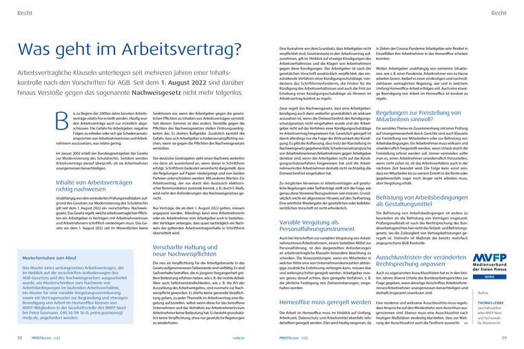 Thomas Lemke ist Geschäftsstellenleiter MVFP Nord und Fachanwalt für Arbeitsrecht