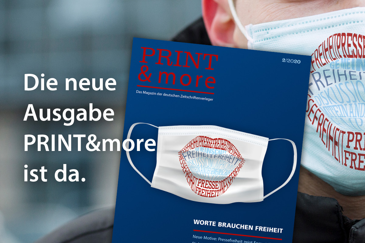 Die neue PRINT&more verbindet unter dem Titel „Worte brauchen Freiheit“ zwei aktuelle Schwerpunktthemen: Pressefreiheit und VerantWORTung: Gerade jetzt nicht den Mund verbieten lassen, aber auch zuhören, Diskussionen zulassen und verantwortungsvoll handeln – das sind die Grundwerte unabhängiger Berichterstattung und freier Medien. Gleichzeitig treffen die Corona-Folgen auch die Verlagsbranche.