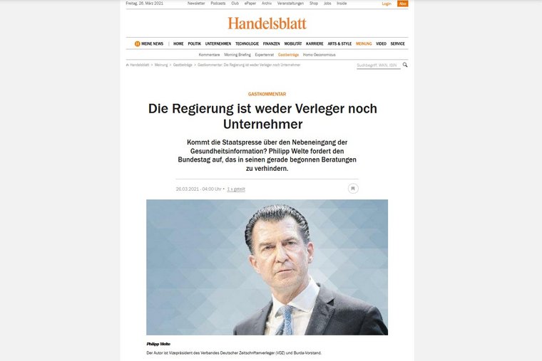 Philipp Welte im Handelsblatt: „Die Regierung ist weder Verleger noch Unternehmer“
