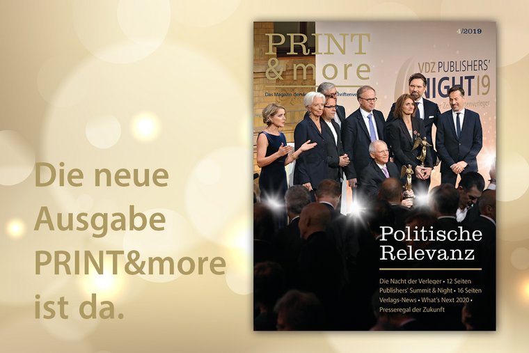 Die aktuelle Ausgabe der PRINT&more ist auch als ePaper unter print-and-more.net verfügbar. Im Abonnement kostet die PRINT&more 50,- € im Jahr (vier Ausgaben) und kann bei j.hoelzl[at]vdz.de bestellt werden.