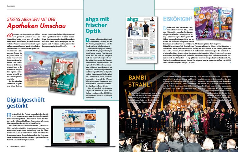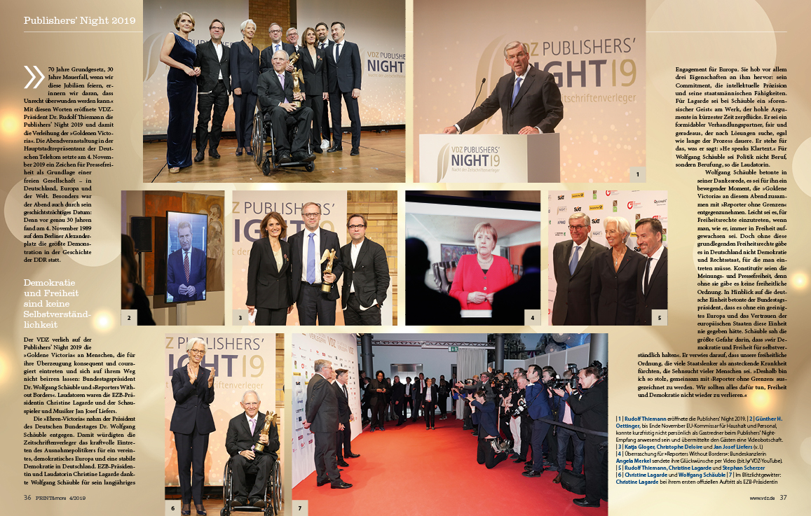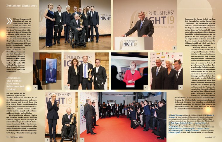 Mit exklusiven Interviews und Beiträgen sowie den schönsten Bildern und Eindrücken von Publishers‘ Summitund Publishers‘ Nightauf insgesamt 14 Seiten. Wie sich Verleger im Kampf um Aufmerksamkeit, politische Rahmenbedingungen und gegen globale Player behaupten, war Thema des Verlegergipfels, der deutliche Signale in Politik und Branche sendete. Die Publishers’ Night stand ganz im Zeichen von Unternehmertum, Pressefreiheit und Demokratie.