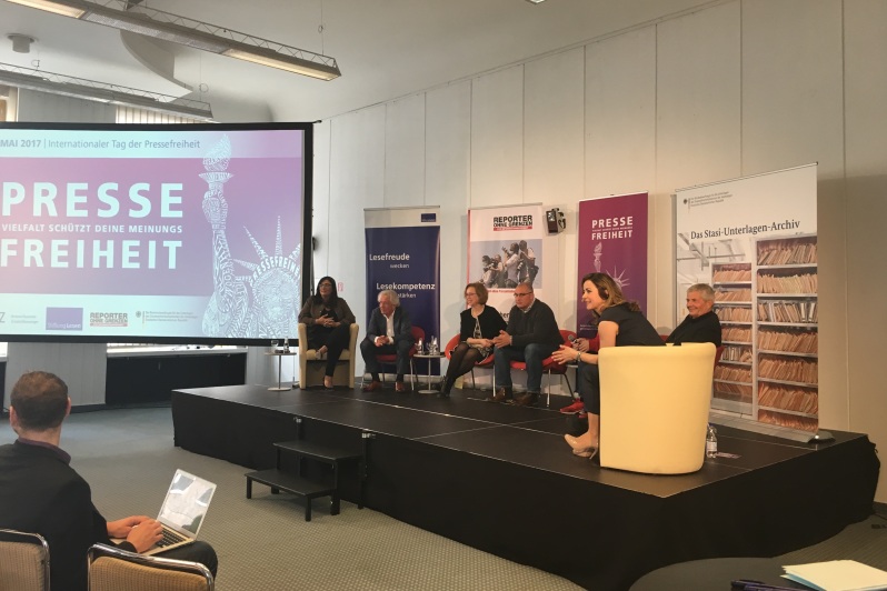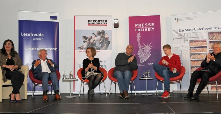 Bei der von der Lesebotschafterin Bettina Cramer moderierten Veranstaltung diskutierten neben dem VDZ-Präsidenten die Journalisten Düzen Tekkal, Britta Hilpert und Peter Bandermann, Roland Jahn, Bundesbeauftragter der Stasi-Unterlagenbehörde, und YouTuber Tim Heldt. Ihnen folgten vor Ort rund 120 Schülerinnen und Schüler aus Berliner Schulen sowie über Facebook Live viele weitere Klassen aus ganz Deutschland.
