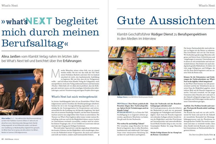 Warum das Gesamtpakt aus Print, Internet und Social Media die Medienbranche für junge Menschen so attraktiv macht, erklärt uns Rüdiger Dienst, Geschäftsführer vom Klambt-Verlag. Im Interview mit PRINT&more spricht er über die Berufsperspektiven und warum sich der Einstieg für Nachwuchskräfte lohnt.