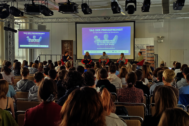 #PressefreiheitIstDeineFreiheit: Unter diesem Motto veranstaltete der Medienverband der freien Presse (MVFP) gemeinsam mit zwölf Partnern am 30. April 2024 in Berlin für Schülerinnen und Schüler einen Aktionstag rund um den Tag der Pressefreiheit. Unter Beteiligung des Bundesarchivs, des Stasi-Unterlagen-Archivs, der Friedrich-Naumann-Stiftung für die Freiheit, Glow Communications, Journalismus macht Schule, Reporter ohne Grenzen, der Robert Havemann Gesellschaft, der Stiftung Lesen, #UseTheNews, der Wall GmbH und 9:16 WeCreate erwartete die Jugendlichen in der „Stasi-Zentrale. Campus für Demokratie“ ein vielfältiges Programm mit Podiumsdiskussionen, Workshops und Führungen durch die historischen Räume des ehemaligen Ministeriums für Staatssicherheit der DDR.
