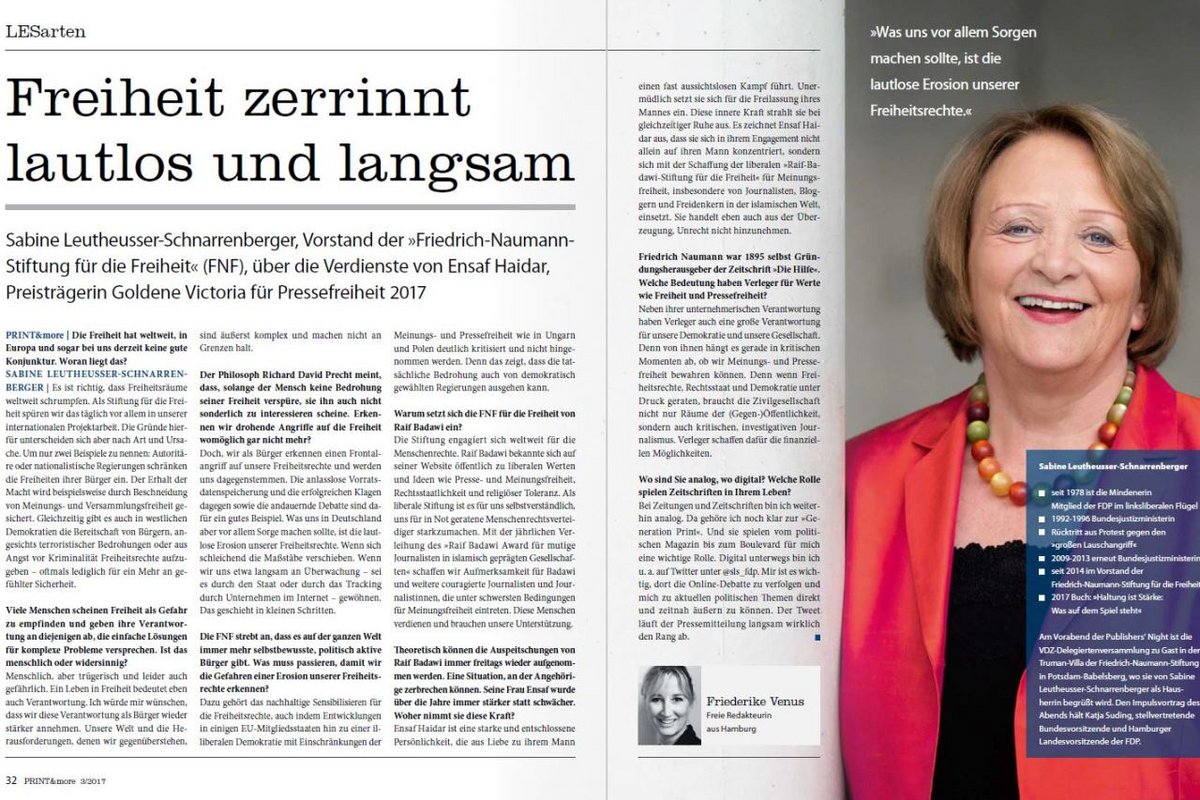 PRINT&more 3/2017: Interview mit Sabine Leutheusser-Schnarrenberger