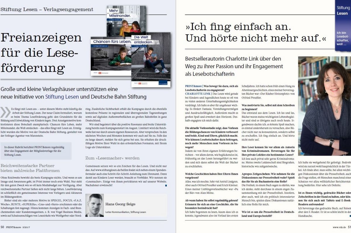 PRINT&more 3/2017: Interview mit Stiftung Lesen-Lesebotschafterin Charlotte Link