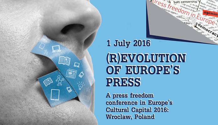 On 1 July 2016 the "(R)Evolution of Europe's Press" conference in Wroclaw, Poland will bring together top press freedom advocates across Europe in order to discuss the political, economic and technological challenges that impact a free and independent press in Europe.